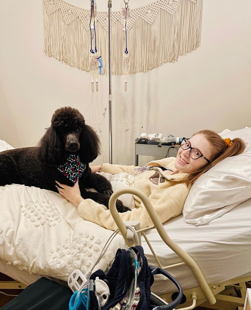 “I’m dying” is still so hard to say and I don’t know if it ever gets easier. The social part of dying is hard. Dying is hard period. Dying is hard when you’re 25 years old and have such a love for life. I’ve always had big dreams and goals but now there are so many chapters I will have to miss out on. People often say I’m strong but I don’t know what that means in this context. I don’t know how to be strong through this. I cry a lot. I also smile and laugh a lot too. Though there’s often a cloud of gloom hanging around, I can’t live under it forever, there’s a balance. Misery loves company and sometimes that company is just the you of tomorrow and the next day and the next day and so on. If you spend too much time in the shade of this cloud, you will miss out on a lot of little happy moments. I don’t do it alone, sometimes I need help and we should never be afraid to admit that. There’s lots of therapy, of holding my moms hand when I’m too sad to sleep, of cuddling with River, of spending time with my family and loved ones. I’m grieving the future that I am losing and thankfully they’re there to let me lean on them when I need it.